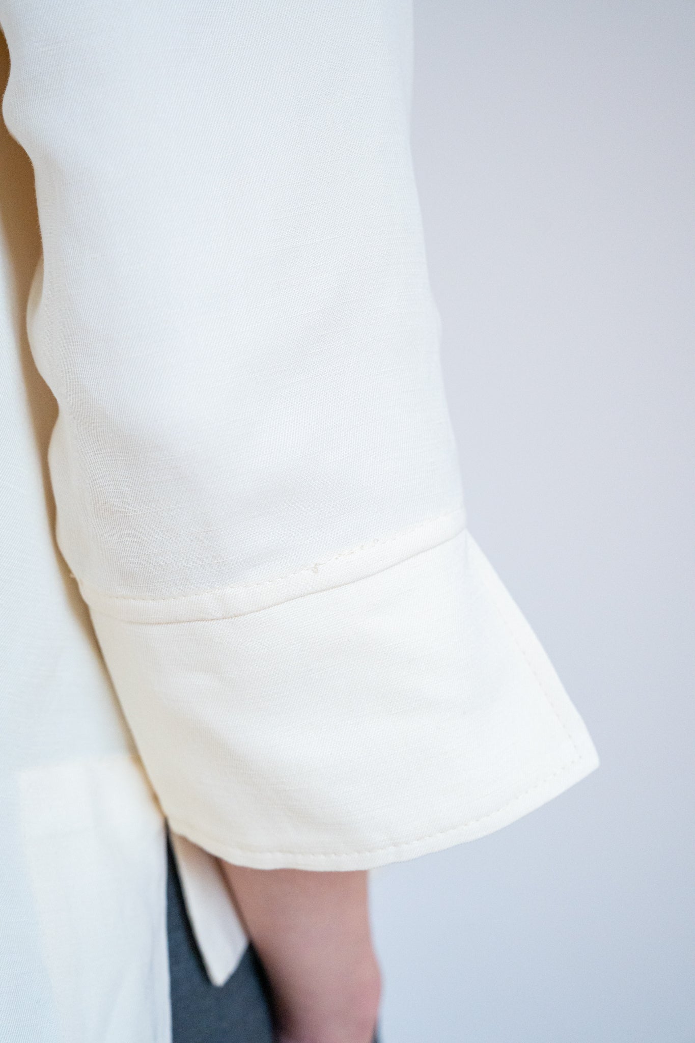 Tento odev sme upcyklovali z kvalitných látok, ktoré zostali nevyužité vo veľkovýrobe. Pochádzajú z firiem na Považí. Vyrábame nové kusy oblečenia z prebytočných materiálov, čím prispievame k ochrane životného prostredia.