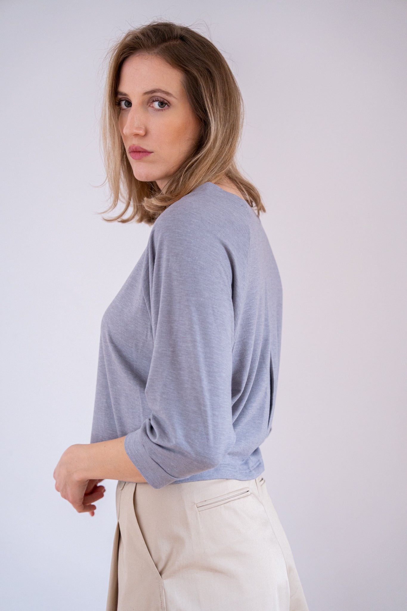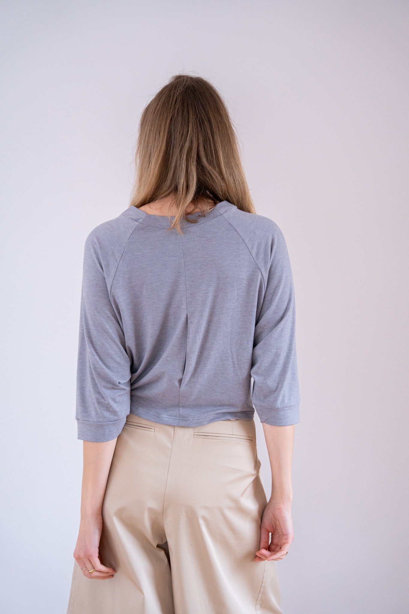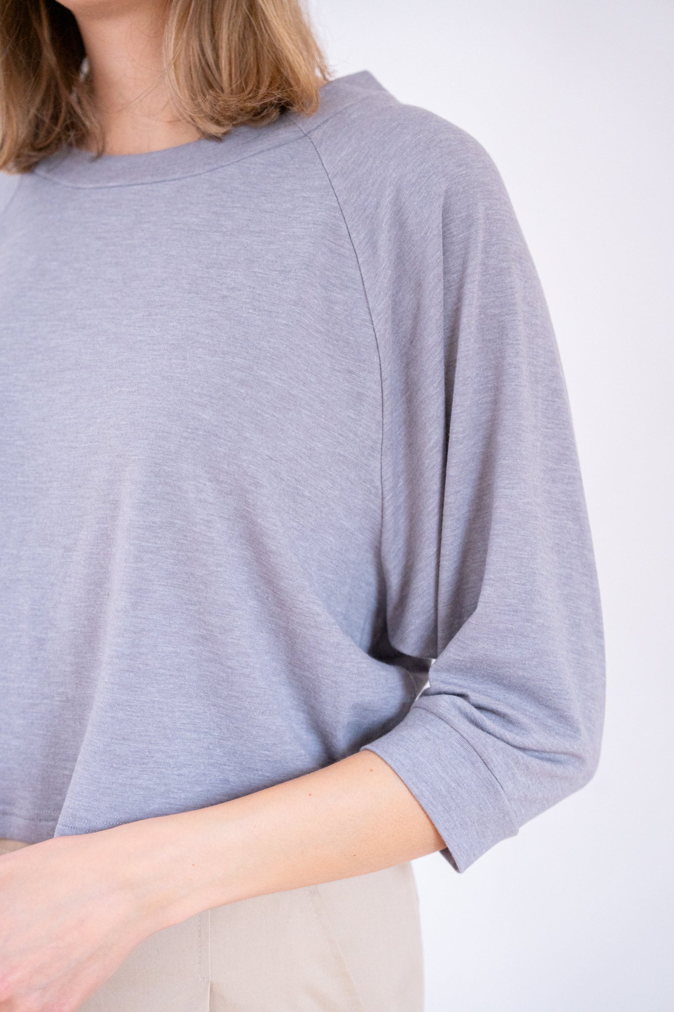 Pohodlné a ležérne crop top tričko s 3/4 rukávom. Má uvoľnený strih raglánové rukávy a mierne skrátenú dĺžku, ktorá krásne ladí s nohavicami alebo sukňami s vyšším pásom.